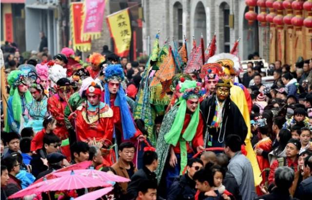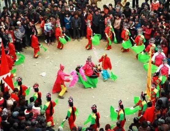 大秧歌、踩高跷、甩红绸、骑毛驴、戴大头……老百姓喜气盈盈舞得高兴,孩子在后边有模有样学得开怀。