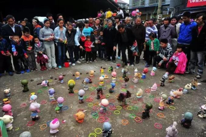 套圈,庙会必备游戏,虽然几率很小,但为了那些小礼品总要乐此不疲地试试手气~
