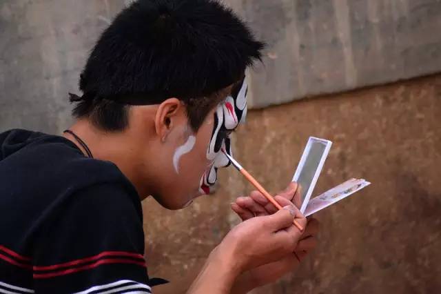 小孩子听不懂戏,就喜欢和伙伴们在戏台子后面看表演者“画脸子”。