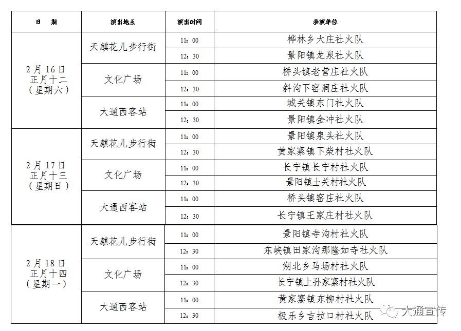 城西区于2月15日(正月十一)在新宁广场举办“龙狮表演、金猪纳福、霸王鞭、八大光棍、威风锣鼓”五大版块的社火展演;