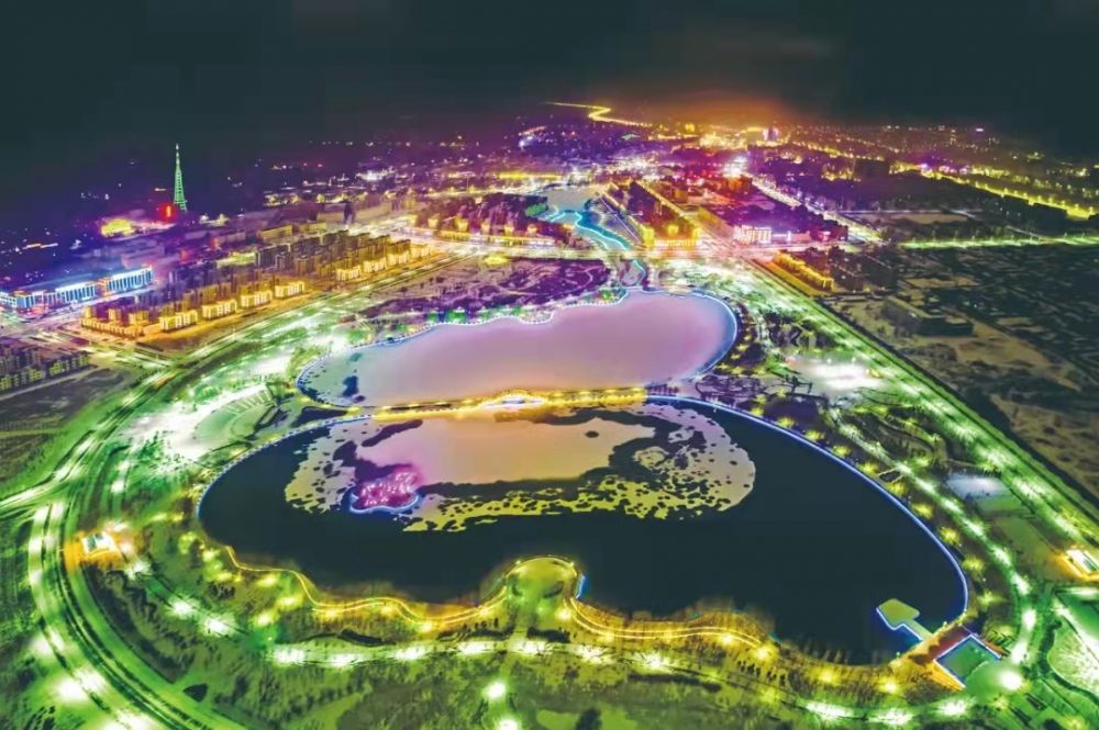 正月十五看花灯,巩留县蝶湖夜景灯光灿烂(图片来源于伊犁零距离)