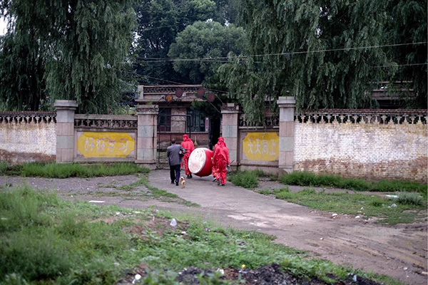 表演结束村民把大鼓抬了回去。