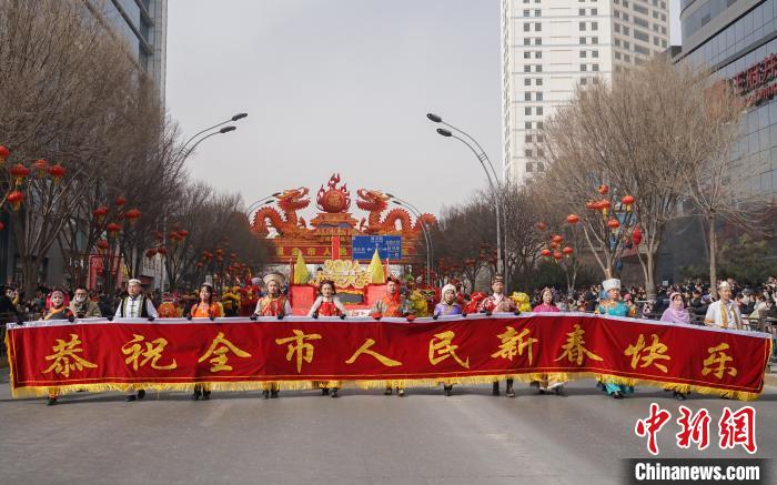 作为流传千年的民俗文化活动,社火植根于乡土文化与农耕文明,承载着希冀来年风调雨顺、五谷丰登的美好祈愿,讲究热热闹闹的节日氛围感和喧嚷流动的人气儿。图为西宁市优秀社火集中巡游活动沿街进行。中新网