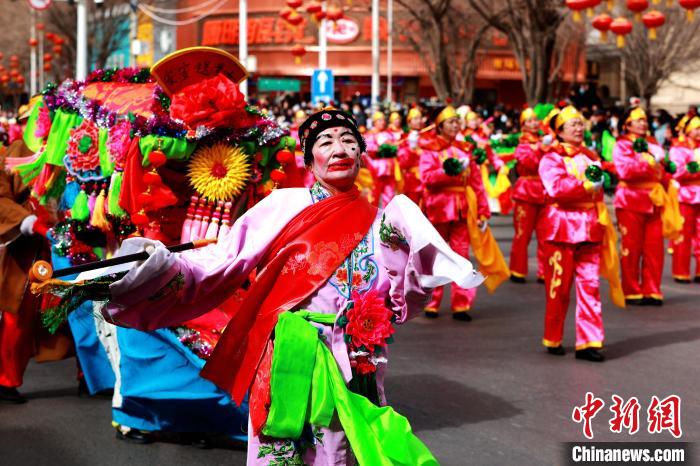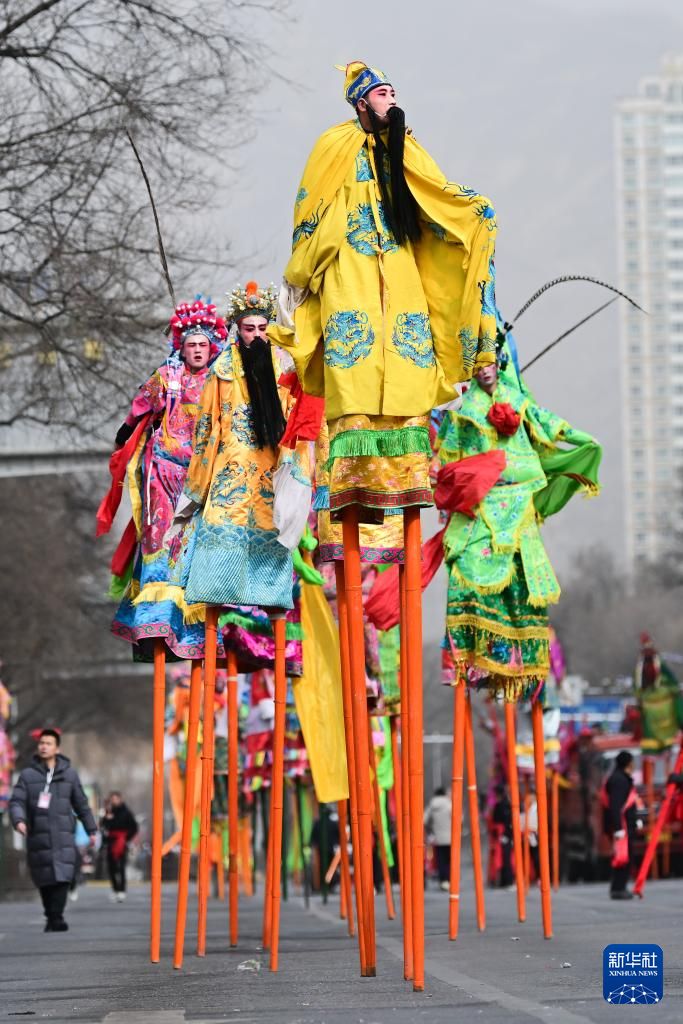 当日,“幸福西宁”“日月湟源”“魅力西区”“山水大通”“生态北区”“和谐东区”“遇见湟中”“文脉中区”八大板块23个表演方阵同场献艺,是西宁市内容最丰富、参与人数最多的一次社火巡演。舞龙、舞狮、民族舞、八仙、旱船、高跷、寸跷等年味十足的社火表演让现场观众欢呼不断。图为演员在社火巡游活动中表演。新华社