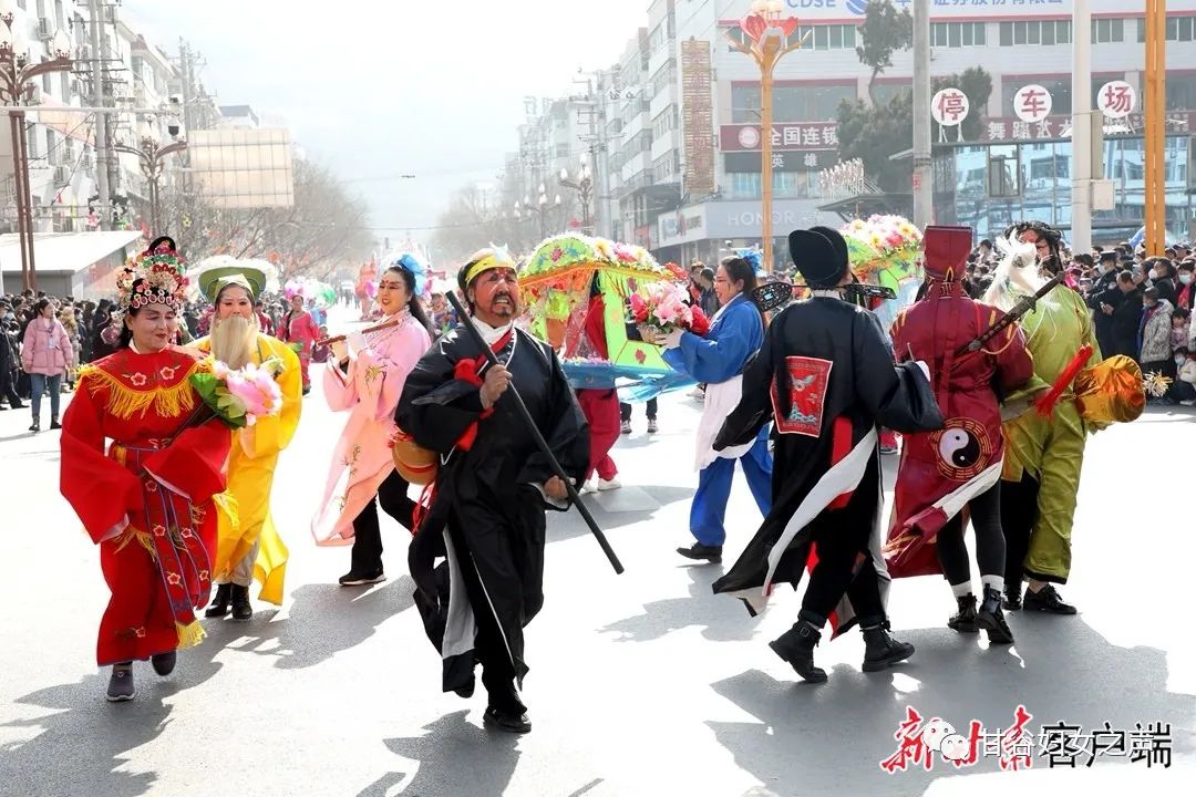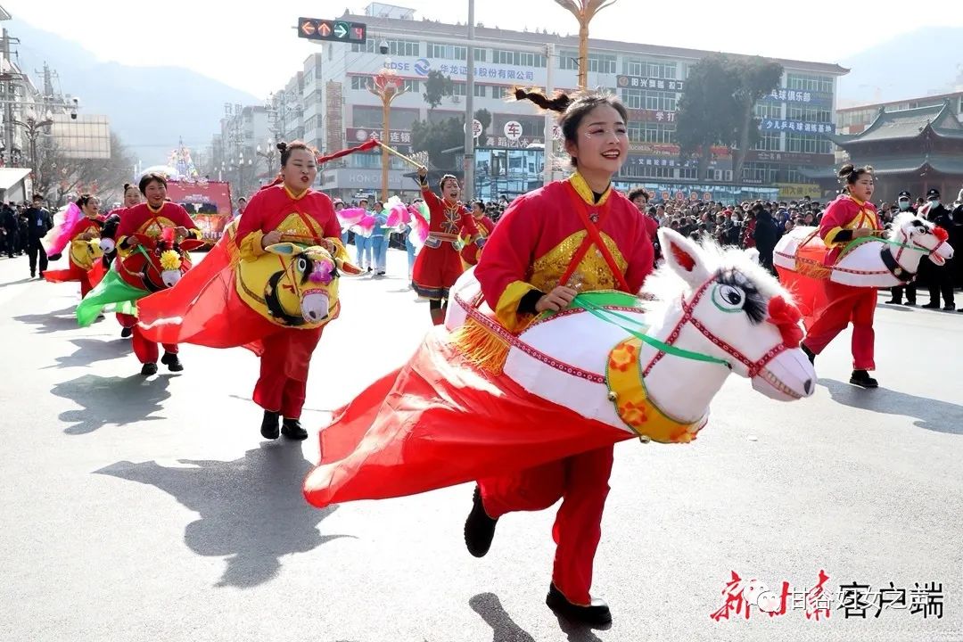新甘肃客户端甘谷讯(新甘肃·甘肃日报记者 白永萍 通讯员 张宾)舞龙舞狮扭秧歌,姜维故里盛社事。2月4日,农历正月十四,甘谷县2023年秧歌社火举行集中汇演。来自各乡镇和单位的社火表演队走上街头,上演了一场文化与艺术融合的视觉盛宴,十万群众驻足观看,汇演现场年味爆棚。