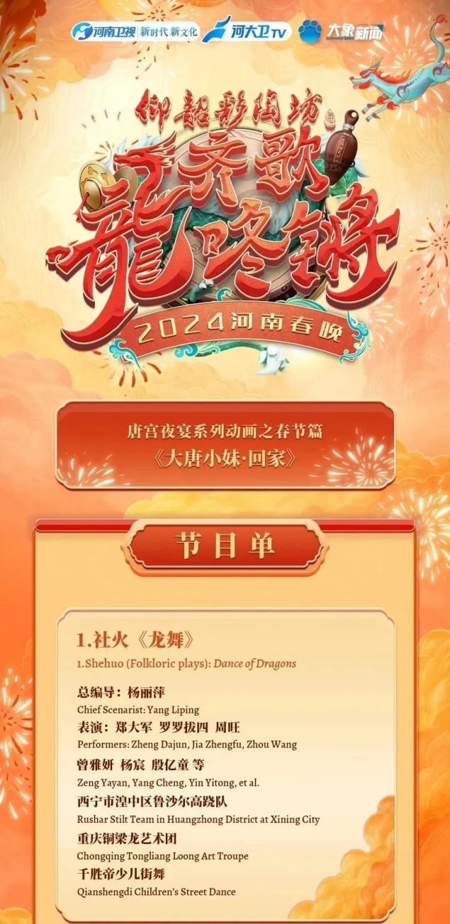 2月7日晚,湟中区鲁沙尔高跷登场《齐歌龍咚锵——2024河南春晚》,在河南春晚中,鲁沙尔高跷队参演了舞蹈《龙舞》,《龙舞》以社火为灵感源泉,融合民族特色极强的高跷表演与气势恢宏的少儿舞龙组合成一出色彩艳丽的春节祈福表演,高、巧、奇的高跷吸引了众人的目光。