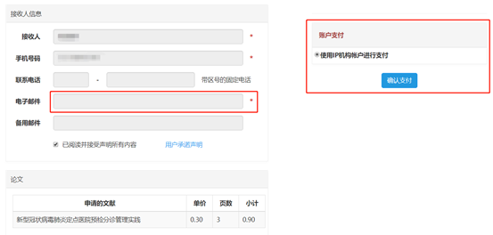 3.检查邮箱地址是否正确,若错误或未填写请填写正确邮箱地址,点击【确认支付】完成获取,文献将在1小时内发送至您的邮箱