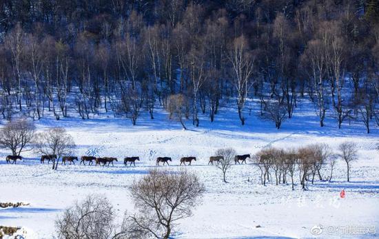 最近的关山已经提前进入冬季,一年中雪景最美妙的时刻莫过于此,草原雪地上奔跑撒欢的牛马,变成一帧帧画,醉了一整个初冬。