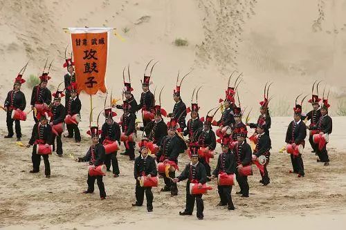据有关专家考证,“攻鼓子”已有近2000多年的历史。攻鼓子一队古装黑衣武士,随着一阵由轻而重,由缓而急,初似铮纵泉流,渐如惊雷奔电的隆隆鼓声中击鼓起舞,将观舞者带入金戈铁马的古战场中,这就是号称西部鼓魂的武威“攻鼓子”。“攻鼓子”已被列入第二批国家级非物质文化遗产保护名录。