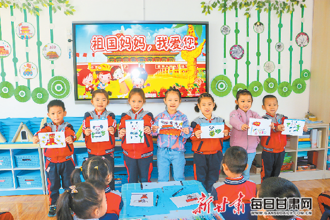 临泽县第一幼儿园开展“童心颂祖国、欢乐迎国庆”活动,表达对祖国的美好祝愿,喜迎国庆节。 新甘肃·甘肃日报通讯员 刘自新