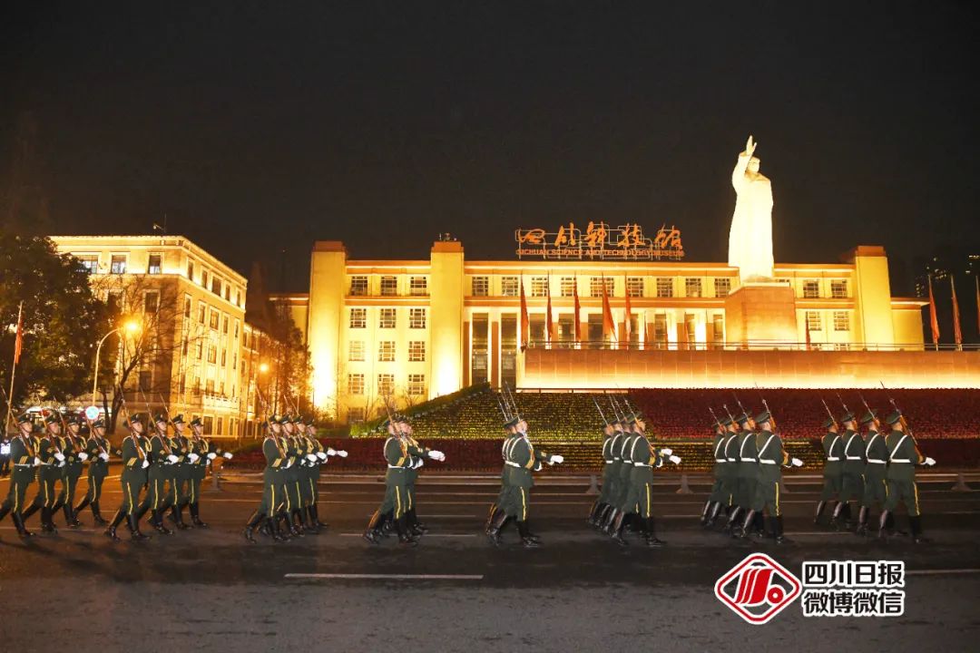 2023年1月1日,成都天府广场,一派喜庆热烈的节日景象。武警四川省总队成都支队“蓉城国旗护卫队”在天府广场举行升国旗仪式,上千名群众齐聚在此,观升旗、唱国歌,迎接新一年的到来。