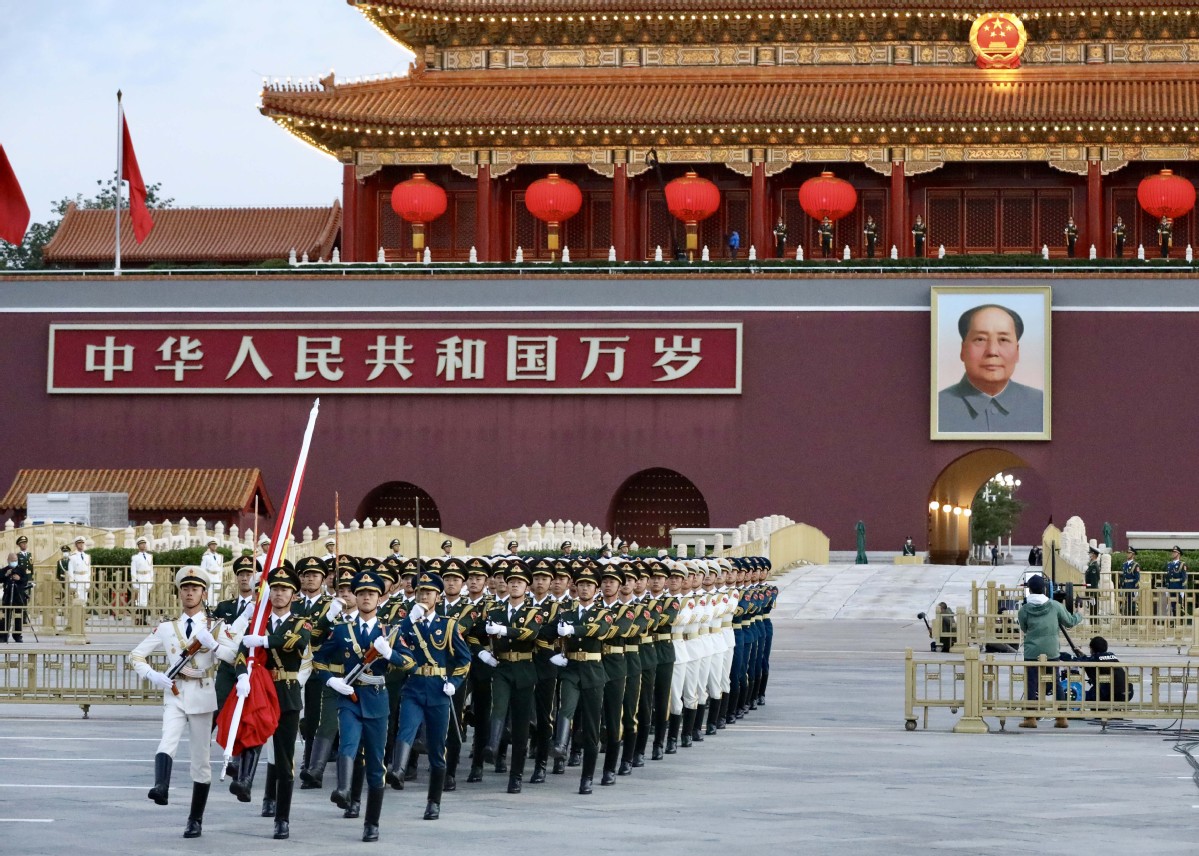 10月1日晨,中国人民解放军仪仗队执行升国旗仪式。 中国日报记者 朱兴鑫 摄