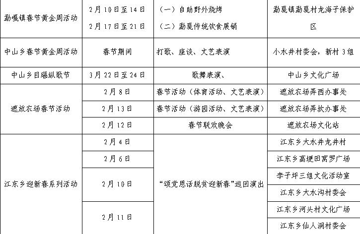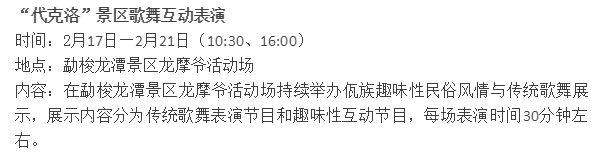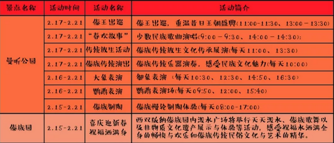 2月16日至2月21日期间,孟连县娜允广场将举办春节游园活动。