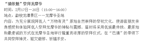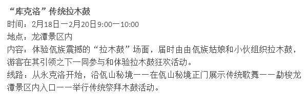 2月17日—19日(元龙阁、大月台)表演女子洞经、舞狮、舂粑粑;