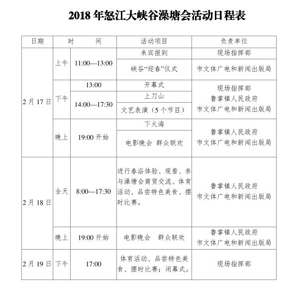 怒江大峡谷澡塘会是在傈僳族春浴习俗基础上发展起来的群众盛会,距今已有四百多年的历史。为保护和悄恋“春浴迎春”的傈僳族传统文化,2月17日——19日,怒江州将举办2018年怒江大峡谷澡塘会活动。