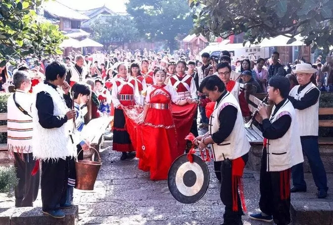 窝热热、勒巴舞、热美蹉、吹树叶、羌笛、阿丽哩、纳西古乐、纳西打跳等纳西族特有的歌舞,你只有来到了丽江古城,牵起阿妈的手一起打跳才能感受到那种热情和韵味,在天地院、四方街和纳西人家的表演都独具特色,不容错过。