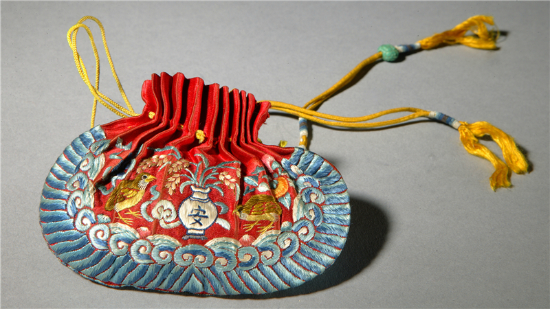 “荷包”是中国汉族传统服饰中人们所随身佩带的一种装零星物品的小包,汉代之前就已盛行。“荷包”这个称谓出现在宋代以后,明清时也叫“茄袋”“顺袋”,它是随着“男耕女织”的社会而产生的。荷包上最珍贵的是一幅幅精工密织、鲜艳美丽的图案,展示了劳动人民的淳美之情。