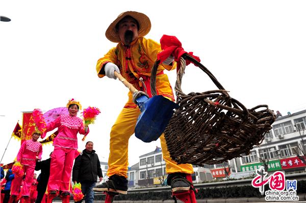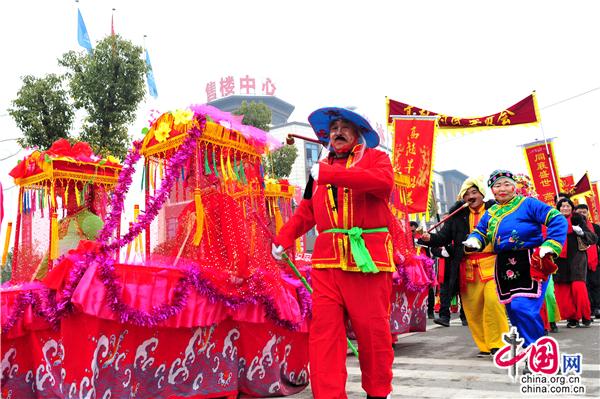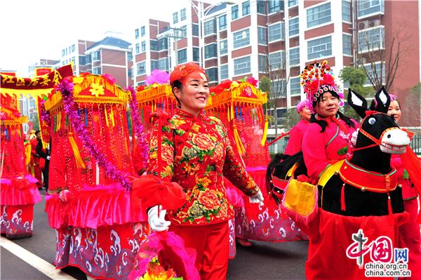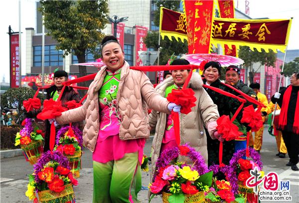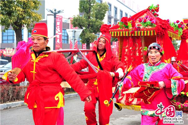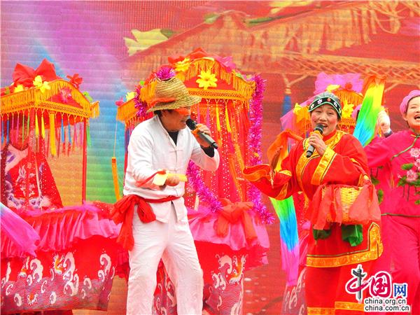 第十八出场的是高赵村带来民俗表演《旱船情结》,划旱船是汉族民间舞蹈的一种形式。流传在双沟地区的采莲船表演以即兴演唱为主,唱词多以祝福或祁财为主。配以民间吹奏、打击乐,使场面欢快活泼,唱腔主要有花鼓戏的陶腔和打腔,陶腔腔调圆润、舒缓悠扬,打腔则以高亢、激昂、语速较快见长。目前能表演的形式有鲤鱼跳龙门、二龙戏珠、八仙过海、等唱腔,填上歌唱双沟变化的新词。