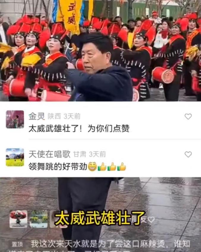 同样燃爆天水街头的还有西凉乐舞、凉州贤孝、华锐藏族民歌,留言区粉丝说“甘肃人民好团结,好感动,这种感觉就像娘家来撑腰了一样。”