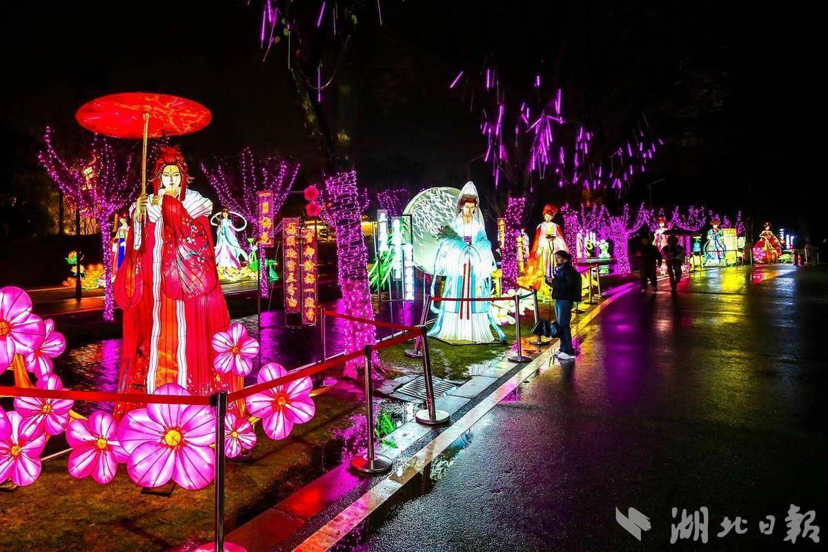 “声光电”互动,灯组有新意。喷雪吐烟、花瓣开闭、鸟鸣鼓响……此次灯会部分灯组安装有动能装置,实现能动功能,能带给游客很好的互动效应。据介绍,十二花神灯组中的“梅花”花神灯组,在展现花神婀娜多姿形态的同时,还将实现“喷雪”,营造冬季踏雪观灯意境;“龙行雨施”灯组,龙头具备“吐雾”功能,以象征新年风调雨顺,国泰民安;“步步花开”灯组将呈现花开花合过程;“凤鸣九霄”灯组中的“凤凰”将定时鸣叫,寓意湖北“一鸣惊人”。占地2亩的“星幻汉市”灯组,设有牌坊灯、古肆灯、帷幔灯以及花瓣舞台,适合古风汉服爱好者打卡拍照。