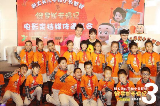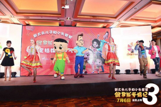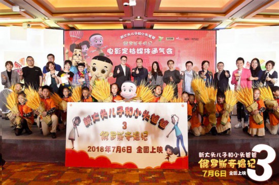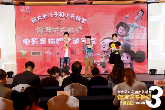 4月18日, 备受期待的“新大头”系列动画电影《新大头儿子和小头爸爸3:俄罗斯奇遇记》在第八届北京国际电影节上举办了定档媒体通气会。少儿节目主持人金龟子、红果果、绿泡泡主持了本次活动。会上宣布影片正式启动,将于2018年7月6日全国上映。