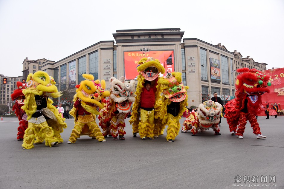 (麦积区2019年社火汇演) 当日上午,来自全区各镇、街道办的13支社火表演代表队,有社火高台、彩车、舞狮、跑旱船、纽秧歌等131个各具特色的民间民俗展演节目。精彩表演在欢快优美的舞蹈中拉开序幕,场地表演的演员们个个精神抖擞,和着愉悦动感的节奏、踩着摇曳多姿的舞步,时而逶迤前行,时而原地踏舞,真是舞出春光醉,彩扇扇得山河美;装饰华美的彩车色彩缤纷、异彩纷呈,各具特色传统高抬社火,气势恢宏、精美绝伦,博得了广大观众阵阵的鼓掌声和赞誉声;在舞狮子跑旱船节目中,神采奕奕、吉祥威武的狮子随着狮子球翻腾跳跃,矫健的身姿、快捷的步伐舞出了动感美、刚劲美,把麦积人民庆新春、过大年的喜庆再一次推向高潮,也集中展示了麦积人民对美好生活的热爱与向往,更展现了麦积人民团结奋发、积极向上的精神面貌。