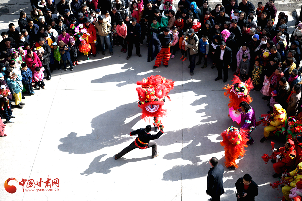 2月11日,由高台县宣化镇贞号、东庄、台子寺等村群众自发组织的三支社火队走村串巷耍龙舞狮,把春节的喜庆推向了高潮。