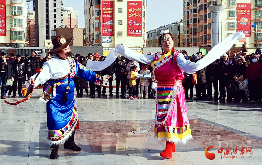 2月11日,来自金昌市永昌县的6支社火队正在为市民表演民俗节目。记者了解到,为营造欢乐祥和的节日氛围,丰富群众的节日文化生活,永昌县已连续多年举办春节社火及文艺节目集中展演活动。