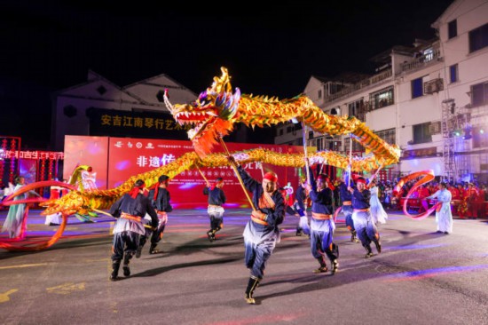 2月4日,湖州安吉县委宣传部、县文化和广电旅游体育局、章村镇人民政府在章村镇金石广场举行“非遗传古韵 开新闹元宵”非遗踩街闹元宵活动。赏花灯、猜字谜,当地的民间艺人还以舞龙舞狮等民俗表演喜闹元宵节。