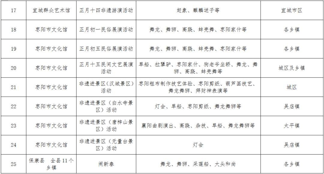 在接下来的日子里,襄阳市各县市区还将开展各类丰富多彩的非遗宣传展示展演和民俗活动,让襄阳的老百姓过个喜庆祥和的非遗年。