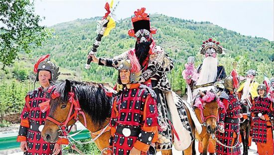 马社火成为新和村最核心的吸引力,为村子带来了不错的年收入。每个节日都有表演,规模有大有小,常年有学生、游客们亲身体验:照着脸谱一丝不苟地化装,穿上戏服,跨上马背,行走在村道上。那一刻,他们仿佛穿越到古代,一个个成了红脸的关公、黑脸的张飞、花脸的曹操,还有那英姿焕发的赵子龙、巾帼不让须眉的穆桂英,英雄远征的豪迈感油然而生。从白天的表演到晚上的篝火晚会,文化自信,让他们爱上了神奇的马社火。