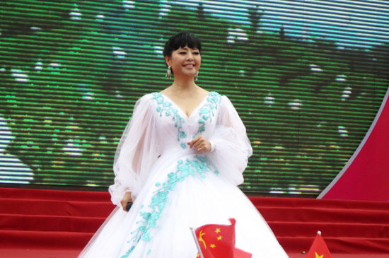 殷秀梅压轴出场,开幕式文艺演出在殷秀梅一曲《我和我的祖国》歌声中结束。