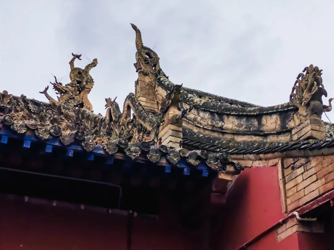 龙宫主殿屋脊上安放九兽,在封建等级制度下,只有皇宫和太和殿安放十兽,李家龙宫的地位由此可见。龙宫建筑物上大大小小一千八百九十九条雕龙,象征“十八子李”根深叶茂。