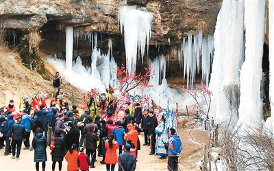今年春节,在村子的冰挂美景前,“??枷社火” 赚足了眼球。