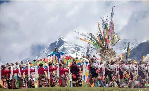 每年农历五月初四,当地藏族群众都要组织隆重的朝山祭祀活动,朝拜四姑娘山,祈祷风调雨顺、五谷丰登、国运昌盛。