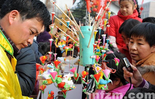 民间艺人的面塑绝活展示吸引了许多南京市民。(新华社记者 孙参/图)