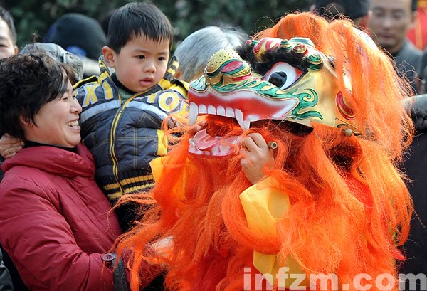 南京市民们在观看舞狮表演。南京市白下区举行“我们的节日,大家的欢乐”迎元宵广场民俗嘉年华活动,来自街道社区的民俗文艺团体、民间艺人等进行民俗踩街表演、民间绝活和书画展示以及传统戏曲展演,热热闹闹喜迎元宵佳节。(新华社记者 孙参/图)