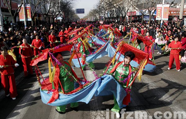 农历正月十四,河北省阳原县举办民间花会,迎接元宵节的到来。