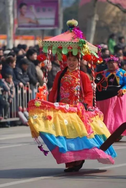 旱船,用竹子做成船形,再用彩纸或彩绸粘糊,有船姑娘驾船,走碎步,犹如船在海中行走一样,由一老翁走在前面,手拿浆板,做摇船样。