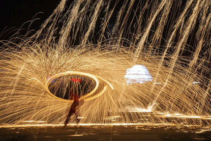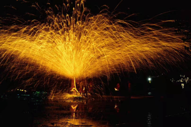 2.打铁花风火轮:观赏独特的打铁花表演,感受金属与火焰的碰撞之美。