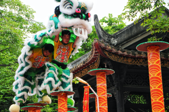 3.舞龙舞狮/梅花桩:欣赏热闹的舞龙舞狮表演,感受喜庆祥和的节日氛围。