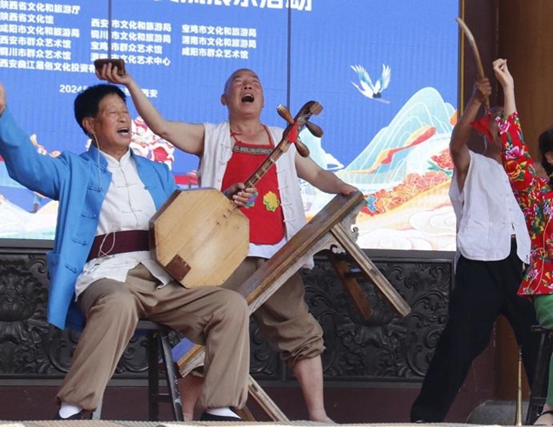 陝西省關中五市聯盟非遺展演展示暨民間文化藝術之鄉交流展示活動現場,華陰老腔精彩上演(資料照片)。