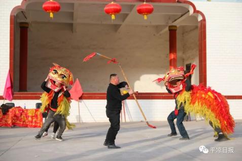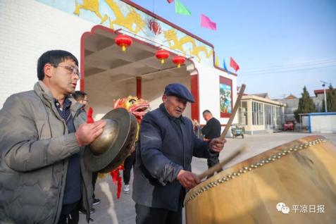 “咚咚锵,咚咚锵……”农历腊月二十七,在崆峒区四十里铺镇洪岳村的文化广场上,村民自发组织的社火表演队队员排练舞龙、舞狮、踩高跷等传统社火节目,迎接新春佳节的到来。