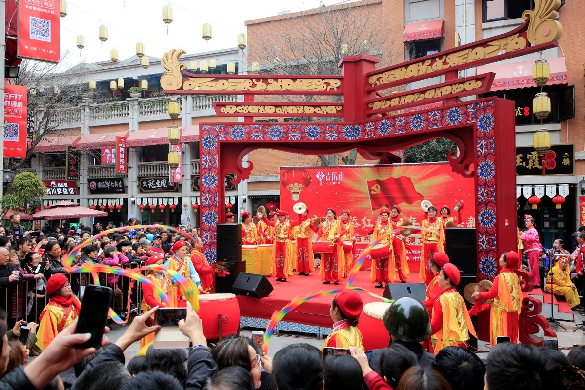 舞龙舞狮、高跷秧歌、杂技等民俗表演和打糍粑、摊豆丝、猜灯谜等民俗体验活动,以及打铁花、剪纸等非遗展示