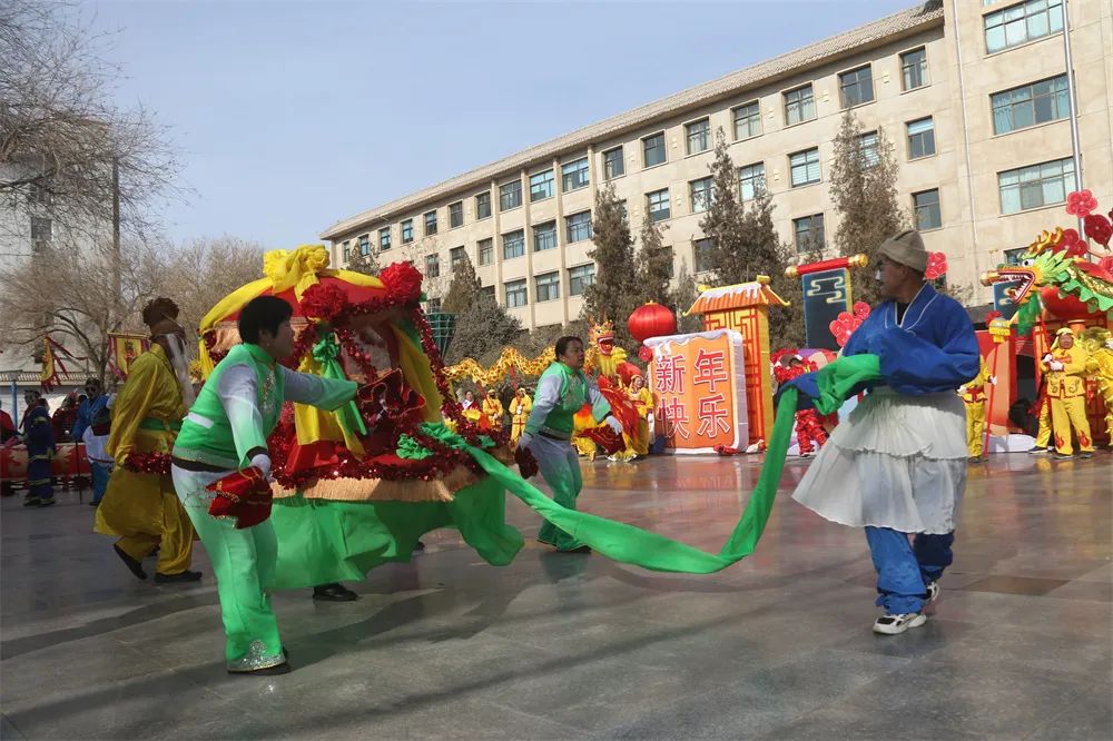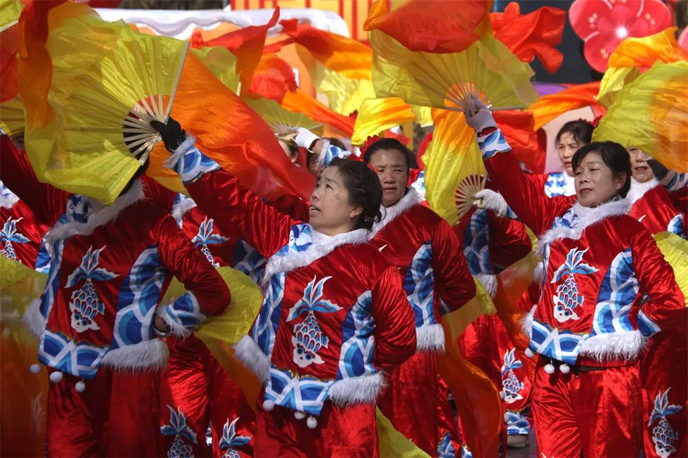 2024年2月6日,一支社火队在敦煌市政广场表演社火秧歌。