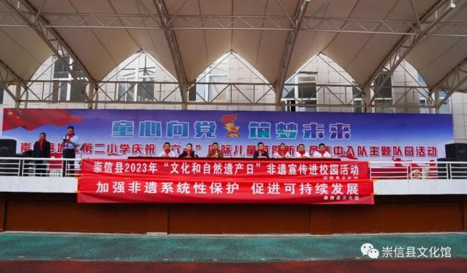 为传承和弘扬优秀中华传统文化,加强未成年人思想道德建设,促进未成年人非遗知识普及,6月1日,崇信县2023年“文化和自然遗产日”非遗宣传进校园活动走进崇信县城区第二小学。