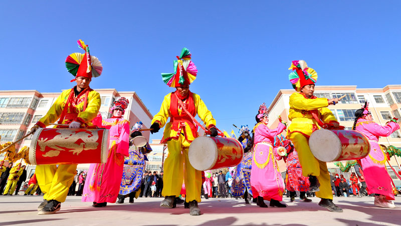 张掖村民们一起表演《经典社火》共同庆祝新年的到来