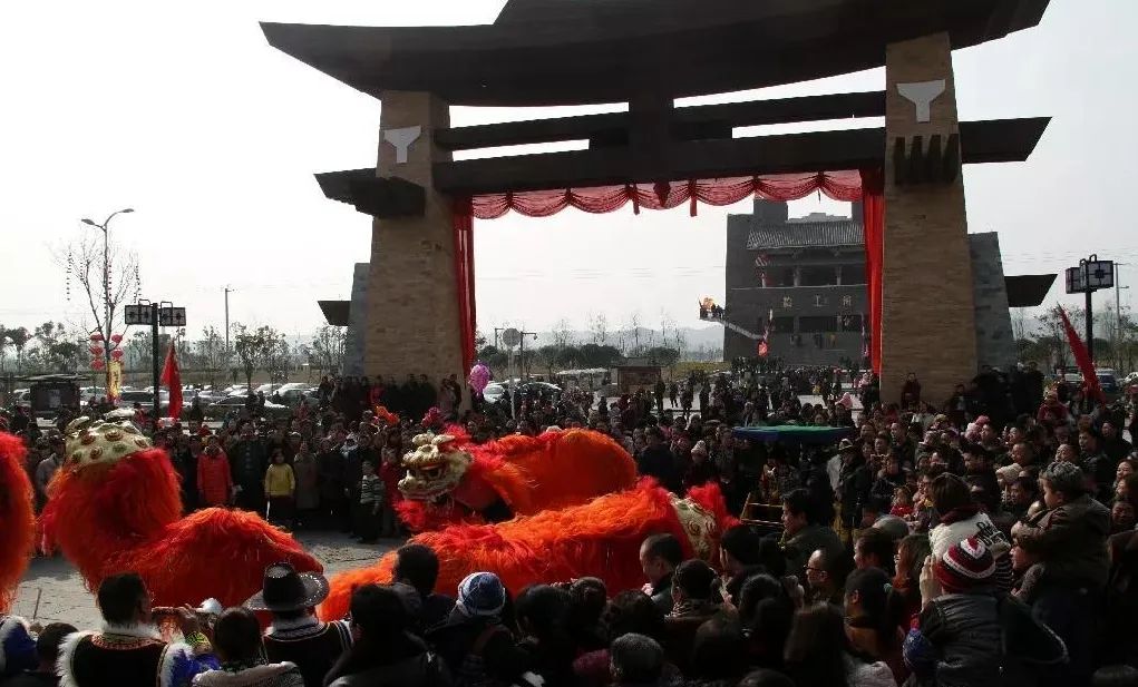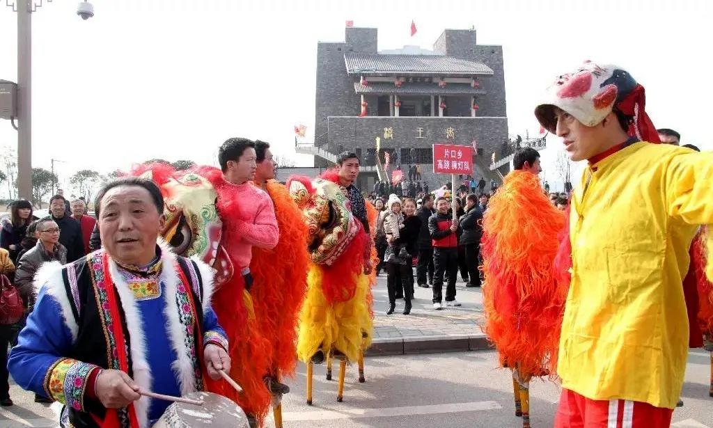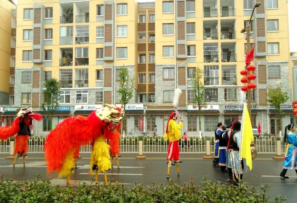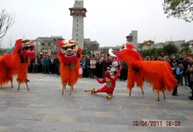 高跷狮舞队在禹王广场为游客展演(图片来源:文化北川)
