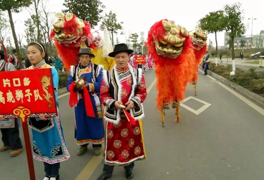片口乡高跷狮舞队参加全县文化大巡游活动(图片来源:文化北川)