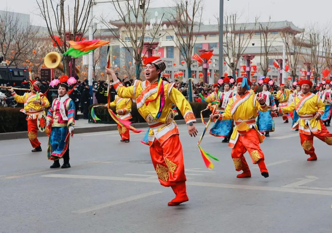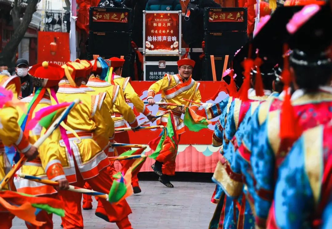 舞动全城闹新春,热闹非凡庆佳节。2月18日,全国秧歌展演活动在榆林古城持续上演。当日,主要有黑龙江省(东北传统大秧歌-花棍舞)、河北省(昌黎地秧歌)、汉中市 (协税社火)、延安市(延长秧歌)以及本地靖边县、定边县等秧歌队陆续登场表演。